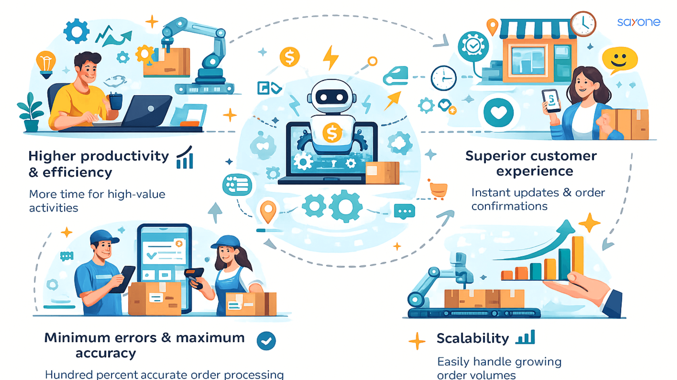 As most manual repetitive processes in e-commerce can now be automated, your team can have time to handle high-value activities that drive innovation and growth.